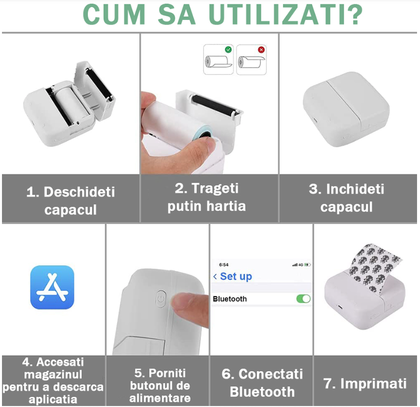 Mini imprimanta termica si Bluetooth compatibil iOS/Android