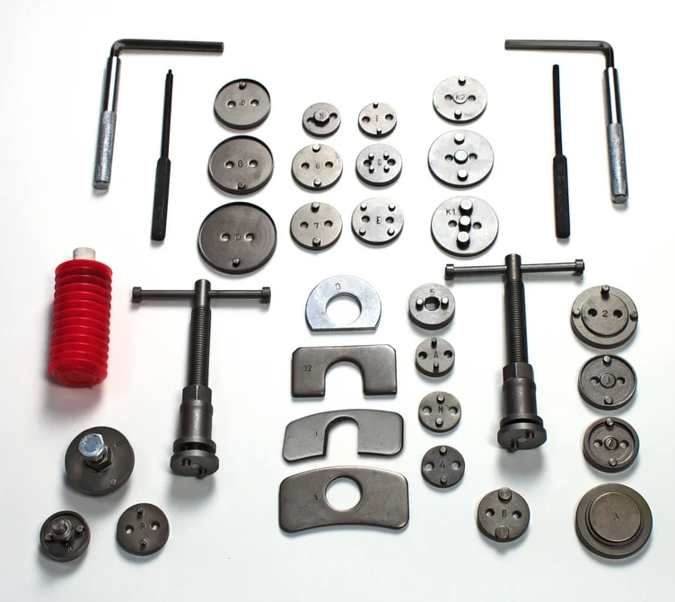 Acest set de prese va va ajuta sa restaurati foarte usor sistemele de franare si totodata sa inlocuiti tampoanele de frana.